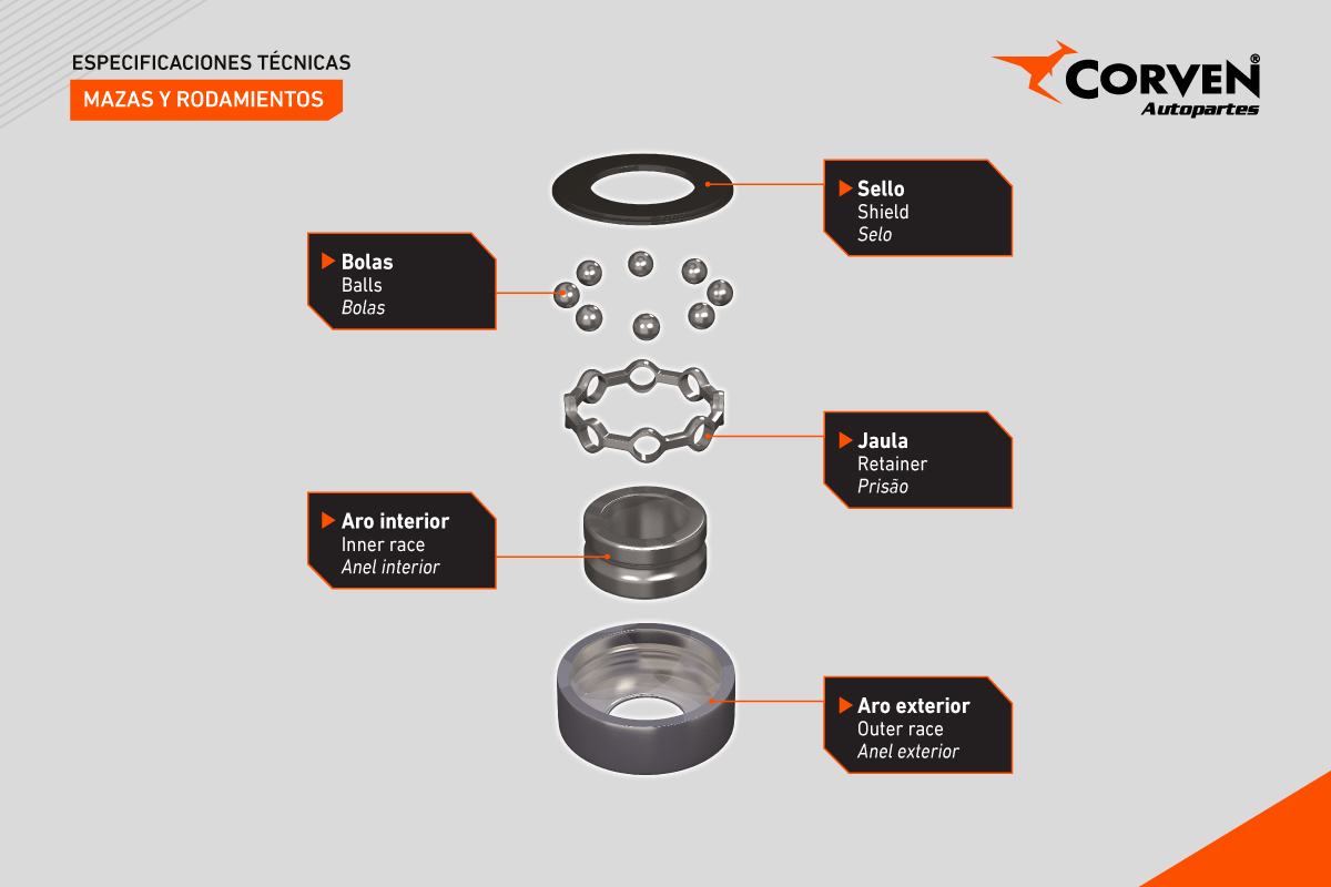 Las mazas y rodamientos Corven han sido desarrollados con materiales resistentes a la tracción y al desgaste.